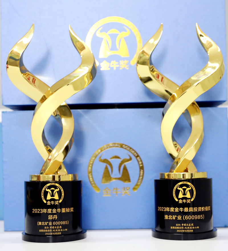 2024年10月24日,由中國證券報與南通市人民政府主辦、北京基金小鎮(zhèn)全面戰(zhàn)略合作的2024上市公司高質(zhì)量發(fā)展論壇暨第二十六屆上市公司金牛獎頒獎典禮于江蘇南通舉行,淮北礦業(yè)以穩(wěn)健提升的治理能力、高質(zhì)量的信息披露、重視股東回報增進(jìn)價值等方面的優(yōu)異表現(xiàn),榮獲“2023年度金牛最具投資價值獎”,公司董事會秘書邱丹榮獲“2023年度金牛董秘獎”。